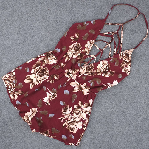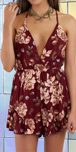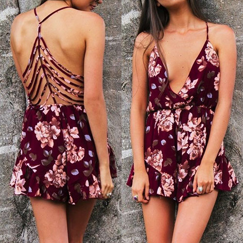 this romper is the perfect choice. Boasting a vibrant floral print,with backless and deep v-neck
