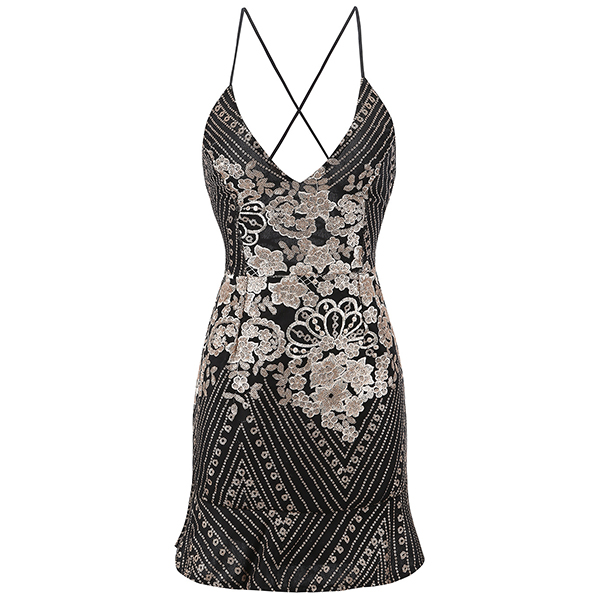 deep v-neck and ruffle hem,sexy and alluring. Moreover,the sequin details make this piece look more sparkle and gorgeous.