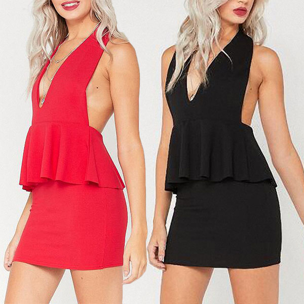Sexy Backless Deep V-neck Ruffle Halter Dress