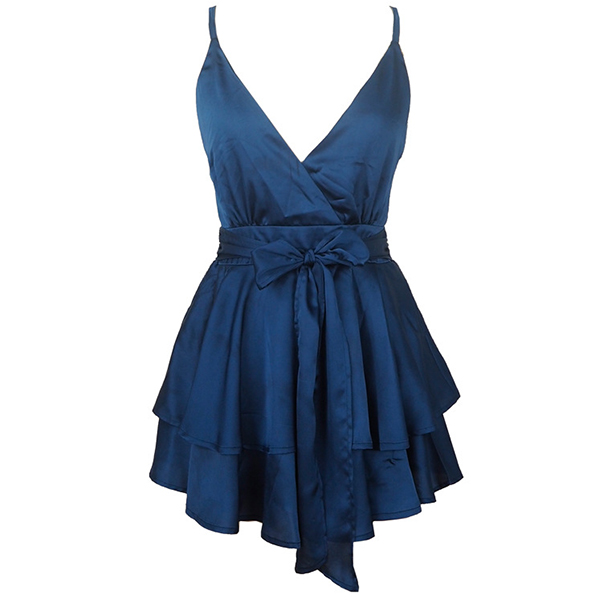 Sexy Backless Deep V-neck Ruffle Hem Sling Romper