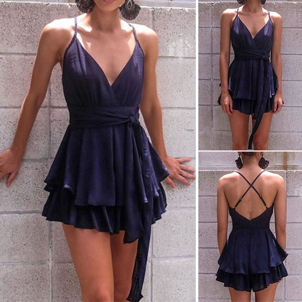 Showcase your sexy and charming summer style through this romper. Sling style,the backless,deep v-neck