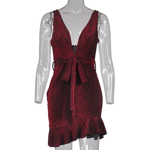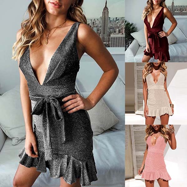 deep v-neck and ruffle hem design make this piece look so sexy and alluring. The high waist