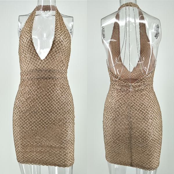 Be the most charming party queen with the help of this dress! Halter style,with backless,deep v-neck and a tight