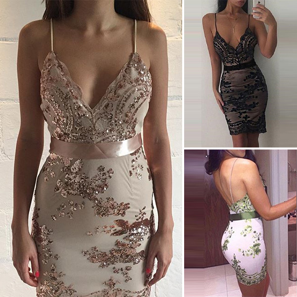will help you achieve that. Sling style,with backless,deep v-neck and sequin spliced design makes this dress so sexy