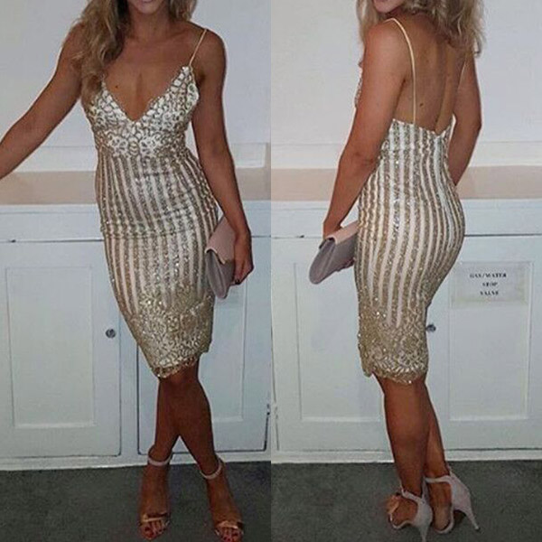 this dress on hand. Sling style,with backless and deep v-neck,sexy and alluring. The sequin spliced design makes this