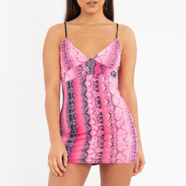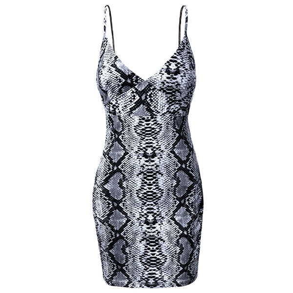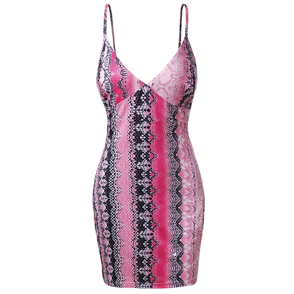 Maintaining your alluring feminine appeal in this dress. The serpentine printed details make this piece