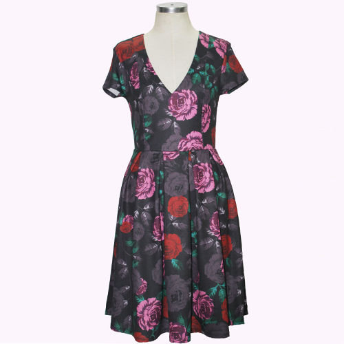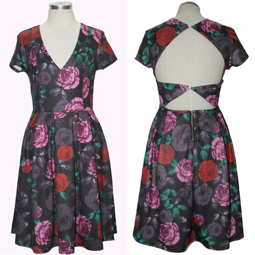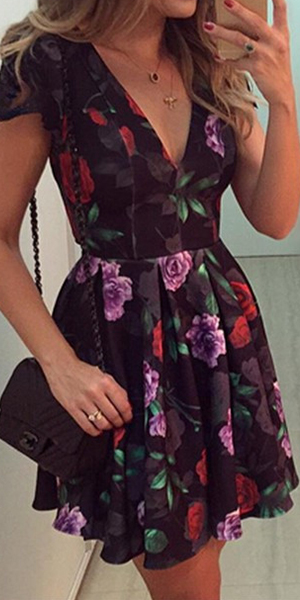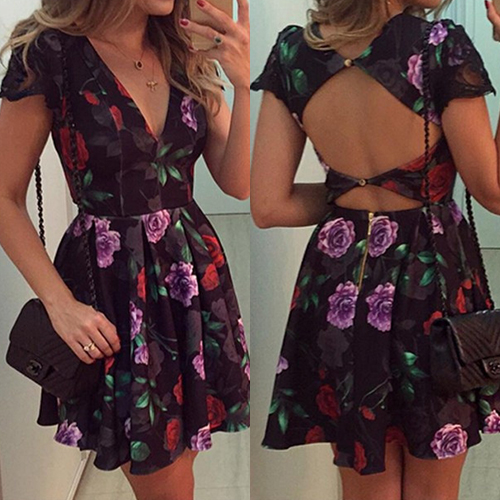 and romantic printed pattern,its backless and deep v-neck design makes it look sexy and charming. Dress it up