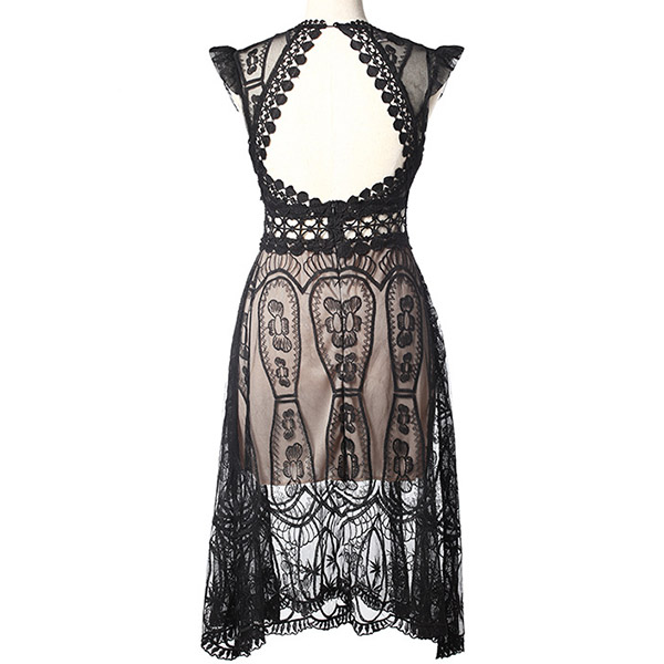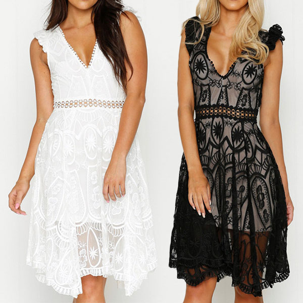 That's why we suggest you this lace dress! Finished with backless,deep v-neck,sleeveless