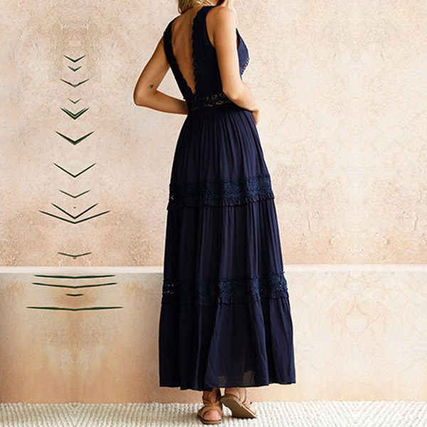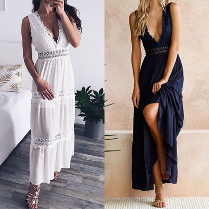 It has many stunning design details like backless,deep v-neck and lace spliced design,which make this