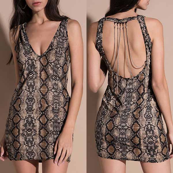 suggest you this leopard print dress! The backless and deep v-neck design will give you an alluring look,
