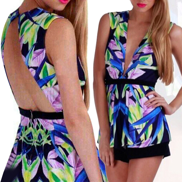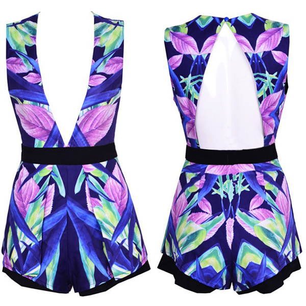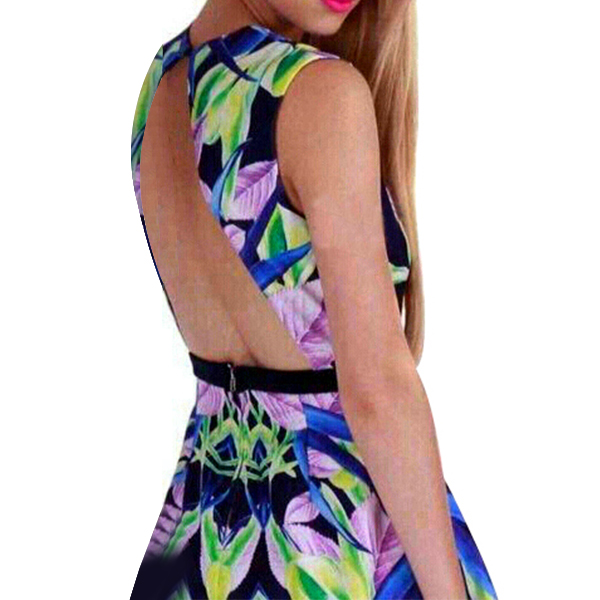 Features chic printed pattern,with sleeveless,deep v-neck and backless design,sexy and seductive. When walking
