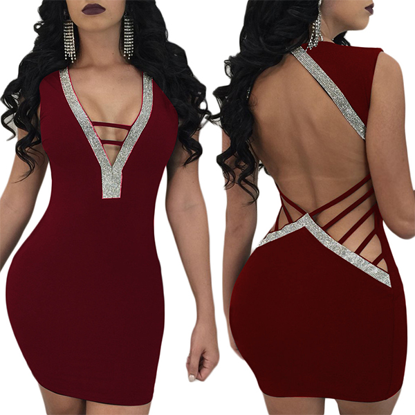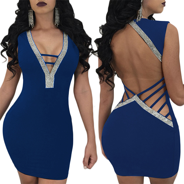 deep v-neck,sleeveless and a tight dress,this dress is a good way to showcase your sexy style and seductive curve.
