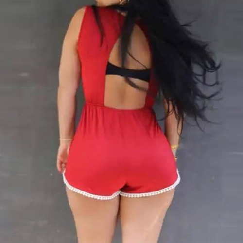 Give your casual wear an upgrade with this romper! Its flirty details such as backless,deep v-neckline