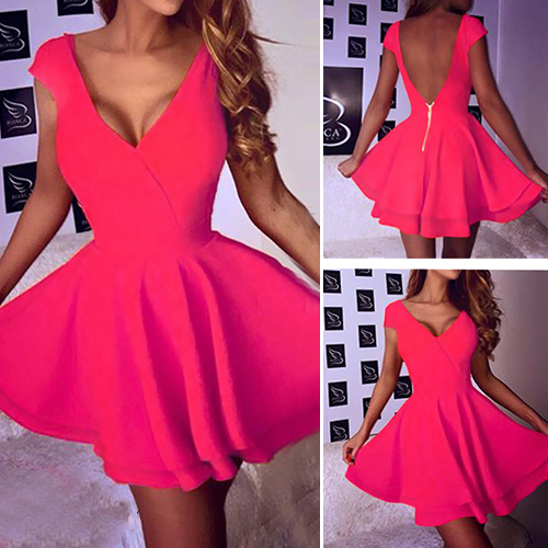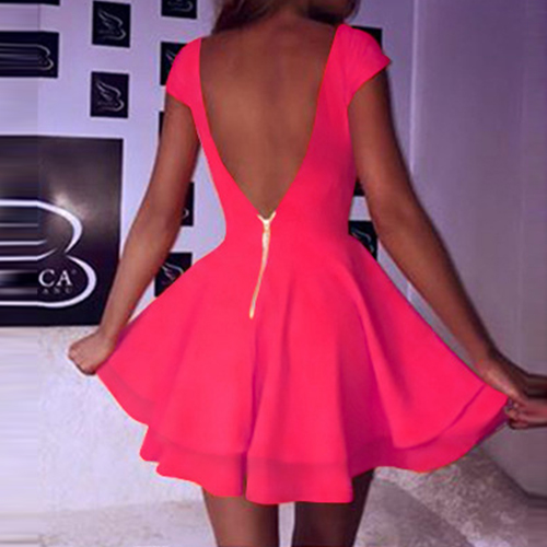 You would have a sweet date night with this sleeveless dress. Solid color style,its backless and
