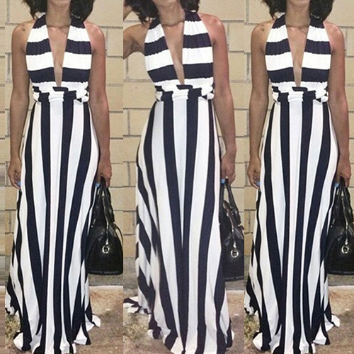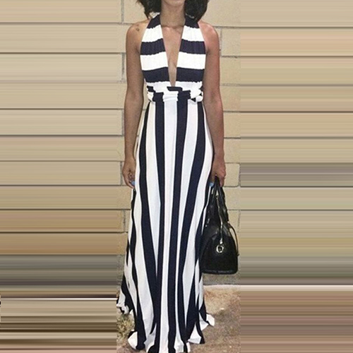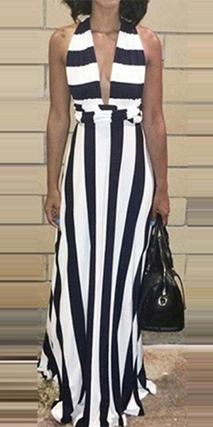 Indulge in your sexy nature by adopting this maxi dress into your ensemble. Striped style,
