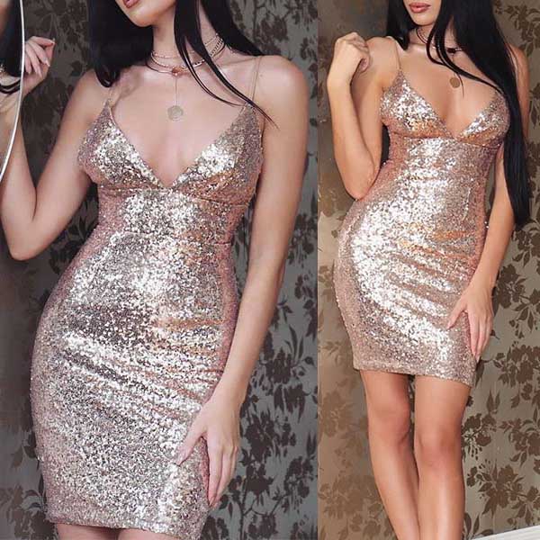 deep v-neck and a tight silhouette,this sequin dress will make you be a pleasant sight at the