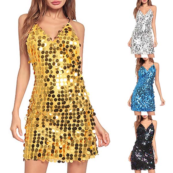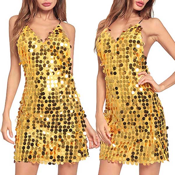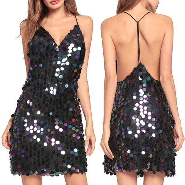 Sling style,the backless and deep v-neck design will give you a more alluring look,while the sequin