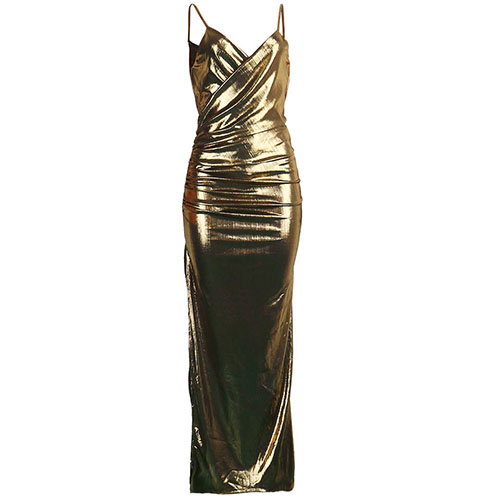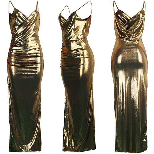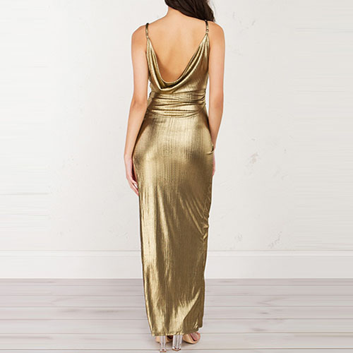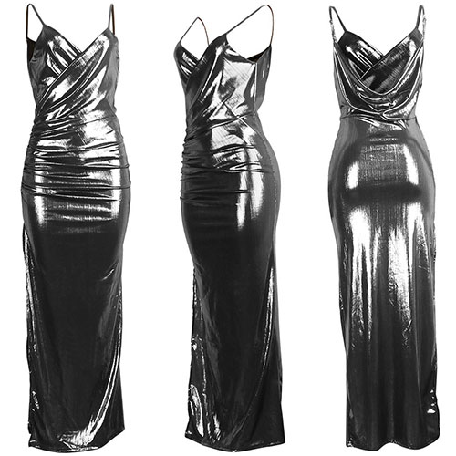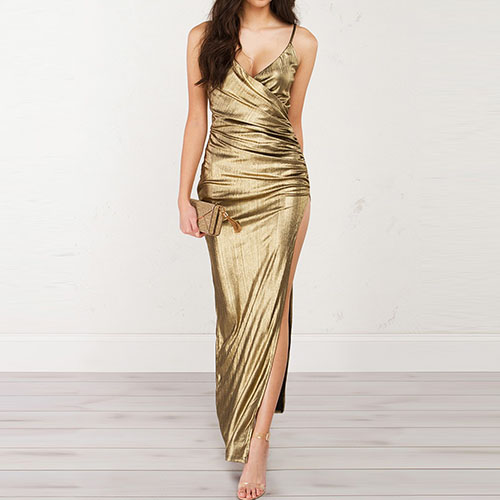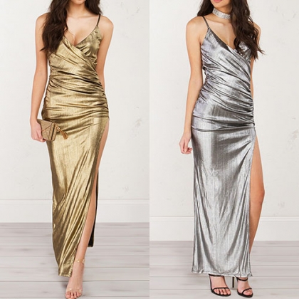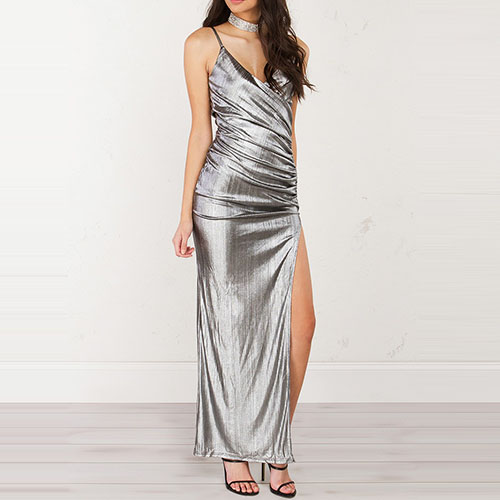 deep v-neckline and slit hem design makes this dress so alluring and sexy. This dress is bound to make you be the focus.