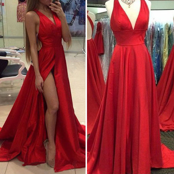 red tone,the backless,deep v-neck and slit hem design will give you a sexy and alluring look. Paired with