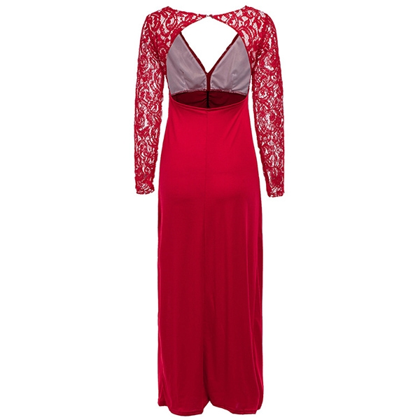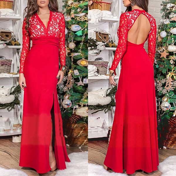 like backless,deep v-neck,slit hem and lace spliced design make this piece look so sexy and charming.