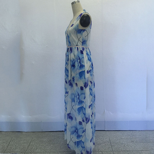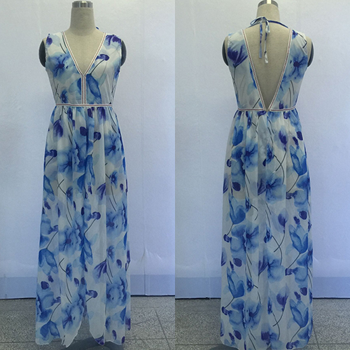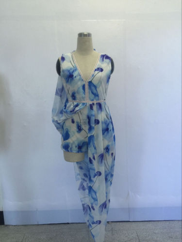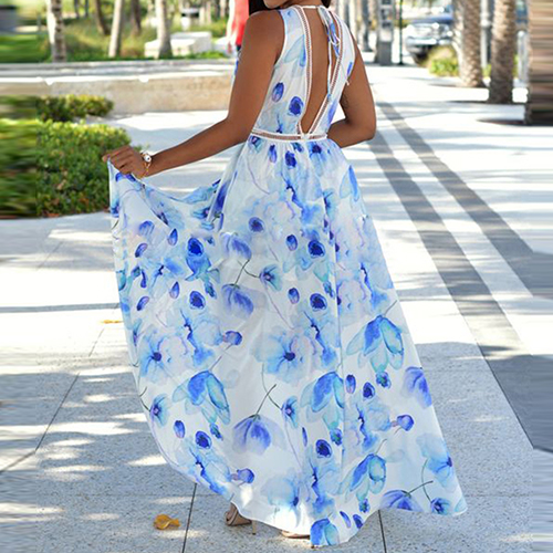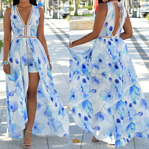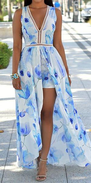 Boasting a vibrant and eye-catching floral print,with sleeveless,a deep v-neckline,