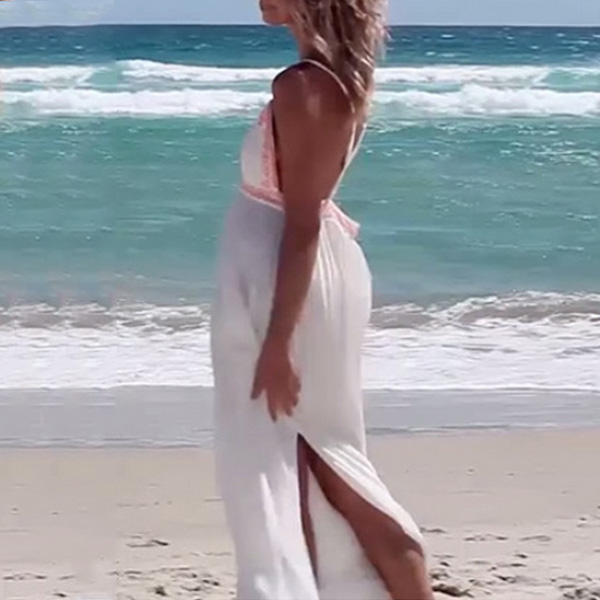 When walking on the beach with this dress,you would be a beautiful sight! Sling style,its stunning details