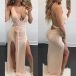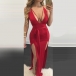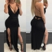 solid color tone,accompanied with backless,deep v-neck and slit hem,this dress is a perfect choice for any last-minute