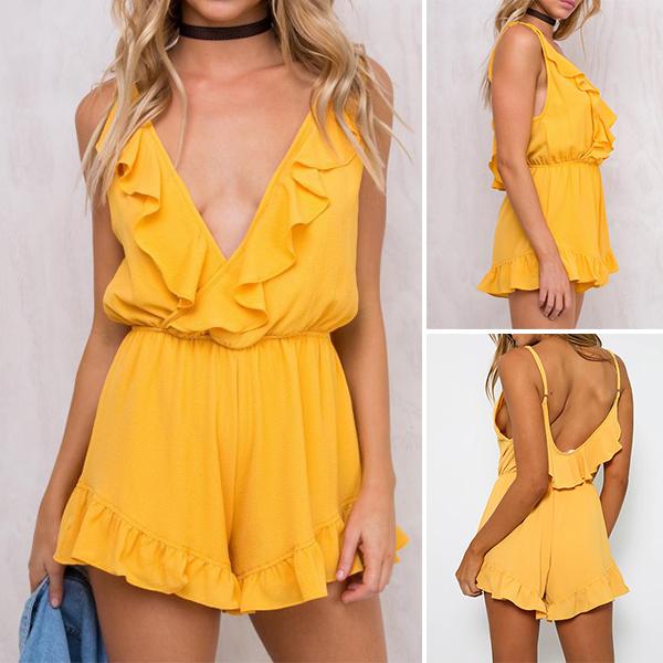 Easy to achieve for a sexy and alluring look through this romper. Sling style,designed with backless,deep v-neck,