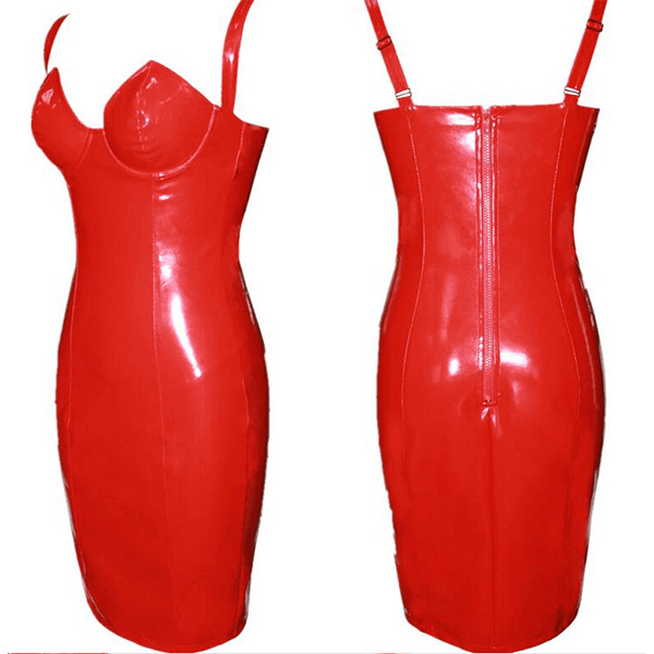 This PU leather dress comes with an eye-catching red tone,with backless,deep v-neck and a fit silhouette