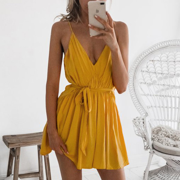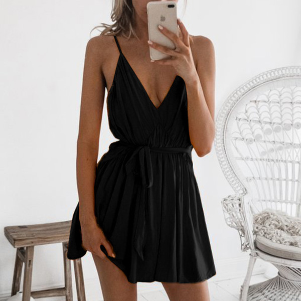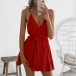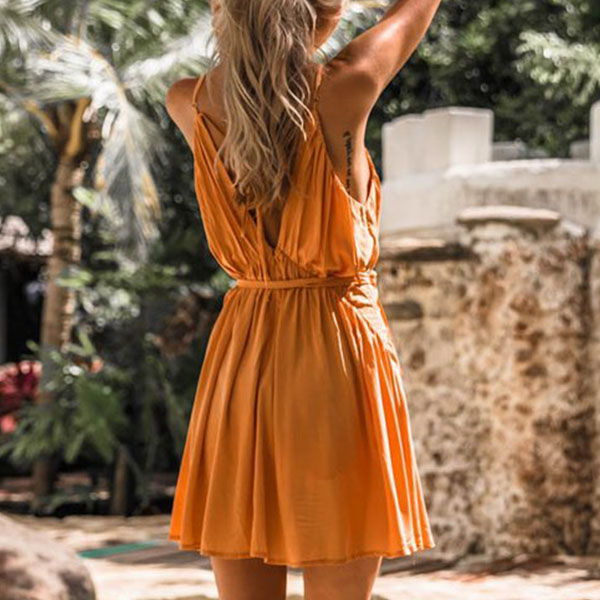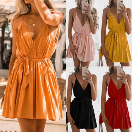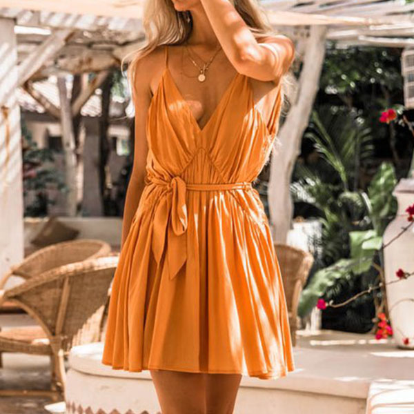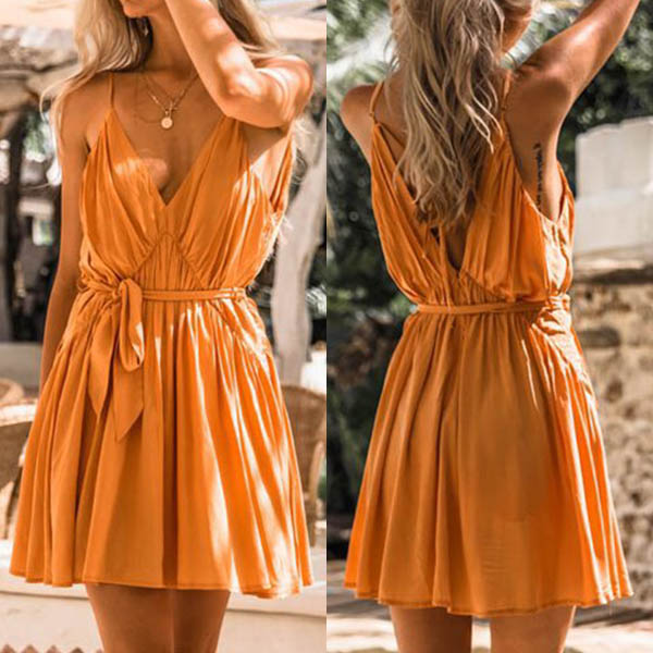 Sexy Backless Deep V-neck Solid Color Sling Dress
