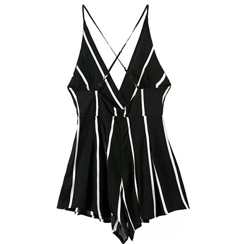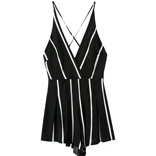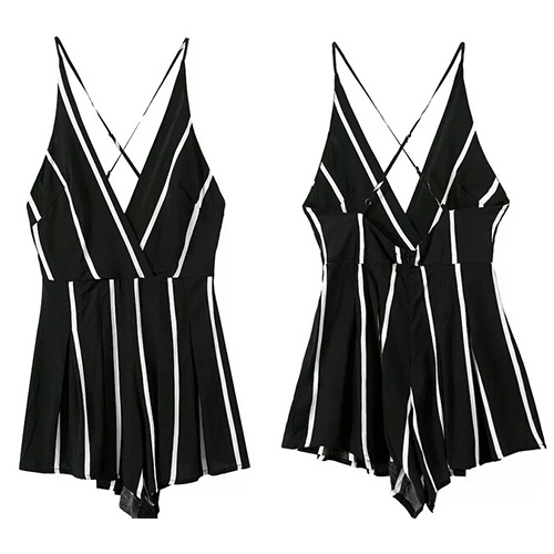 Embrace the warmth of a sunny weekend with a delightfully piece such as this striped romper. Sling style,its backless and deep v-neckline design