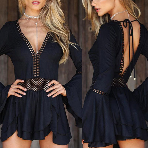 Arouse a splash with the help of this romper. Comes with a classic yet flattering black tone,the backless,