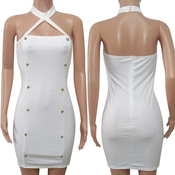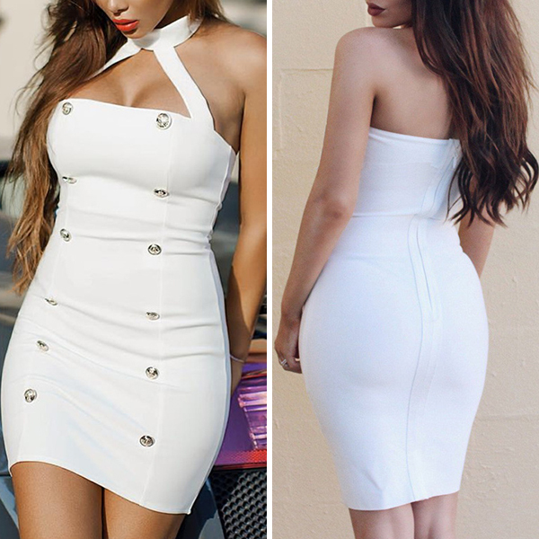 When you throw yourself into this tight dress,you can easily arouse more attention. Halter style,with backless and a