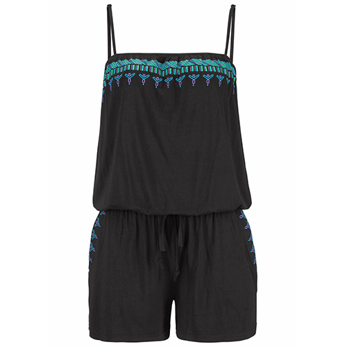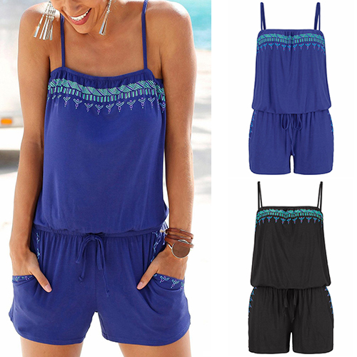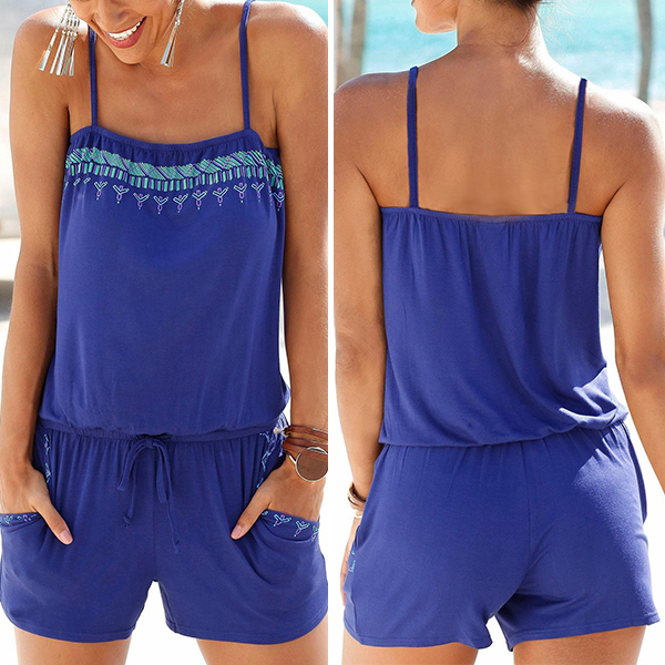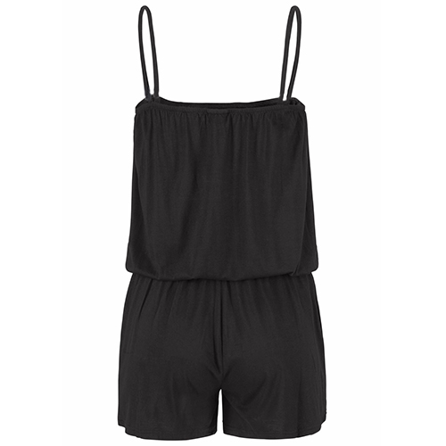 for a more alluring look. Crafted from soft and cozy fabric,with an elastic waist,this cami romper is sure to give you