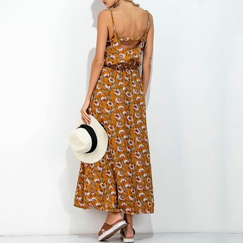 with backless and maxi length design makes this piece more appealing. This dreamy piece is perfect for your summer