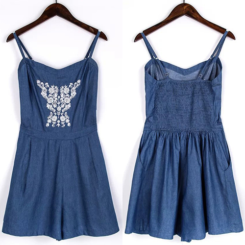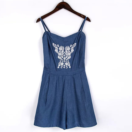 Sexy Backless Embroidery Slim Fit Sling Denim Rompers