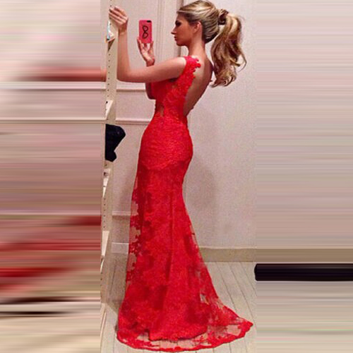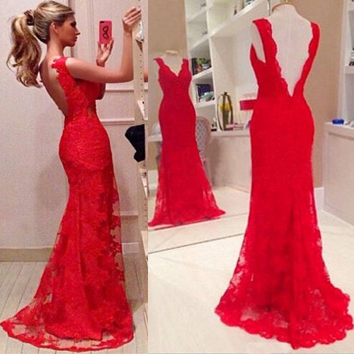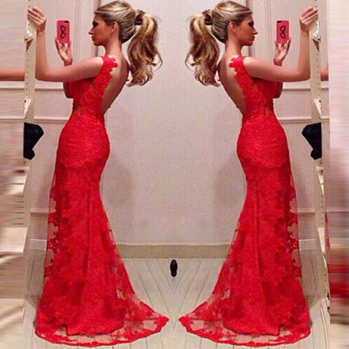 Then you can try this party dress. It features red color,which can make you get noticed. Backless