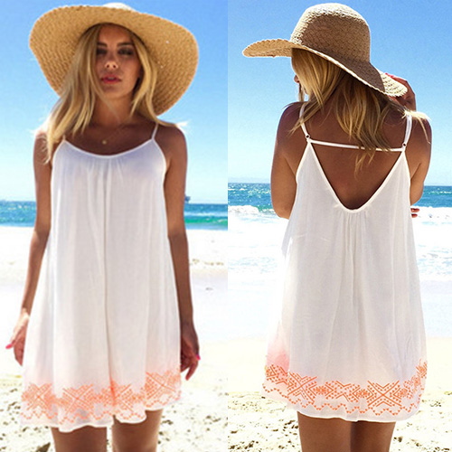 Sling style,with backless and floral print hemline design,sexy and fashion. Loose style,