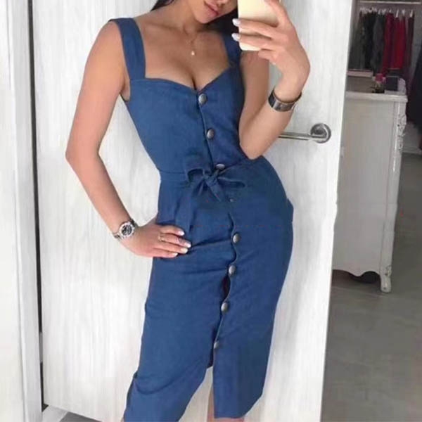 Sexy Backless Front-button Slim Fit Sling Denim Dress