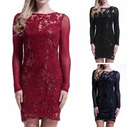 gauze spliced design will give you a more alluring look,while the tight silhouette design can highlight your perfect curve.