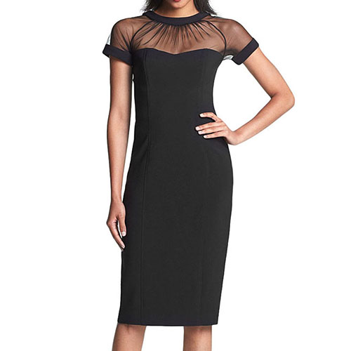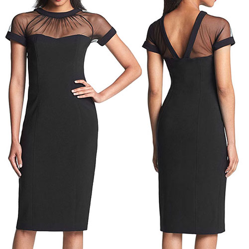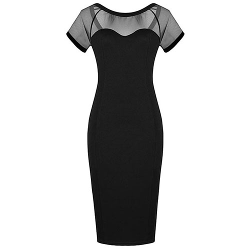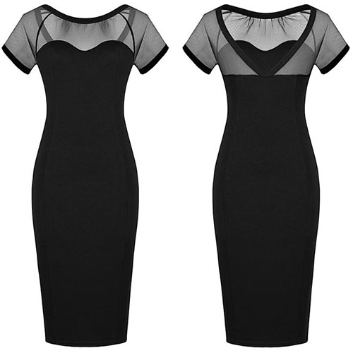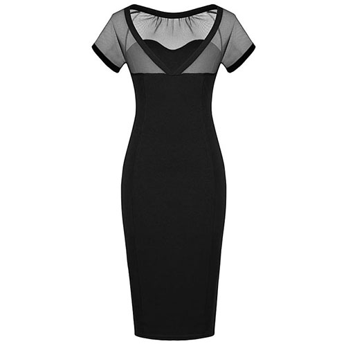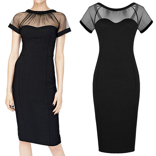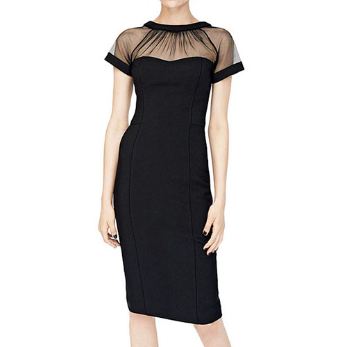 gauze spliced design makes it look sexy and feminine,and its fit silhouette and mid length design can give