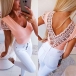 You can easily exude your charming feminine appeal through this t-shirt. Its gauze spliced and v-neck