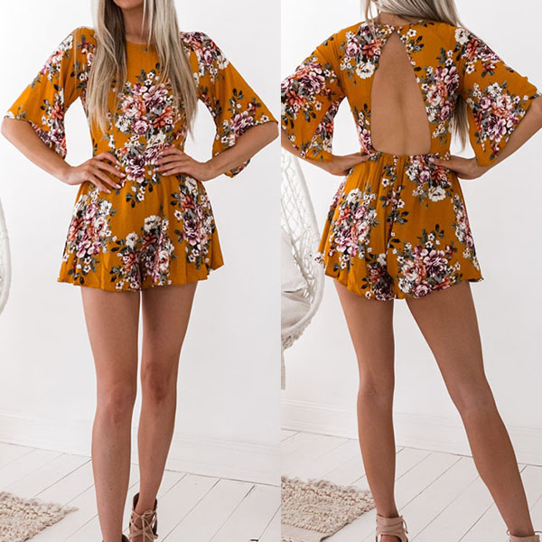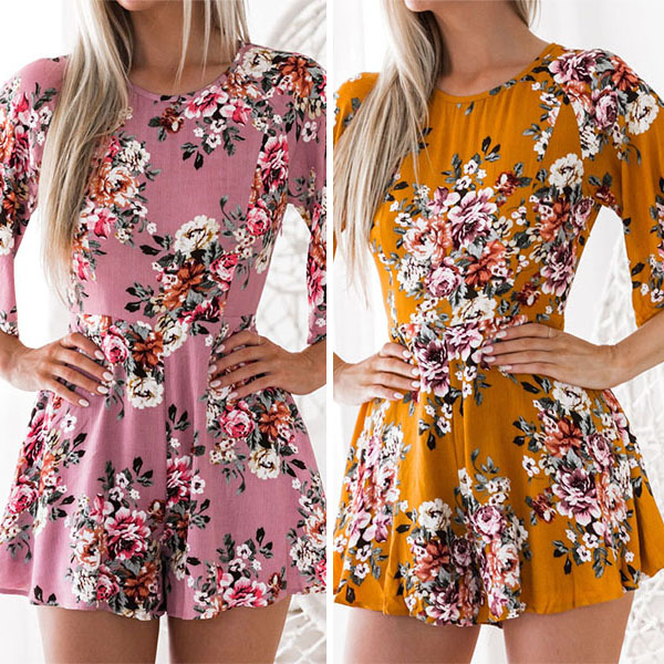 Hey,girls,just step out and greet the sunny weather with this beautiful romper! Its sweet and vibrant floral print