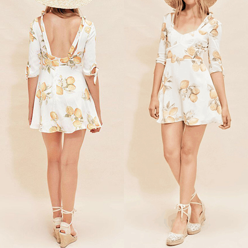 This cozy,stylish yet feminine dress would be your summer wardrobe staple. Features lemon printed pattern,