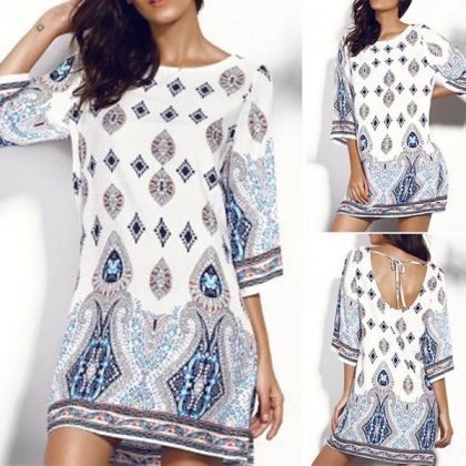 with this dress to showcase your beauty! Features chic and eye-catching printed pattern,the backless
