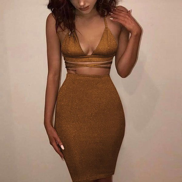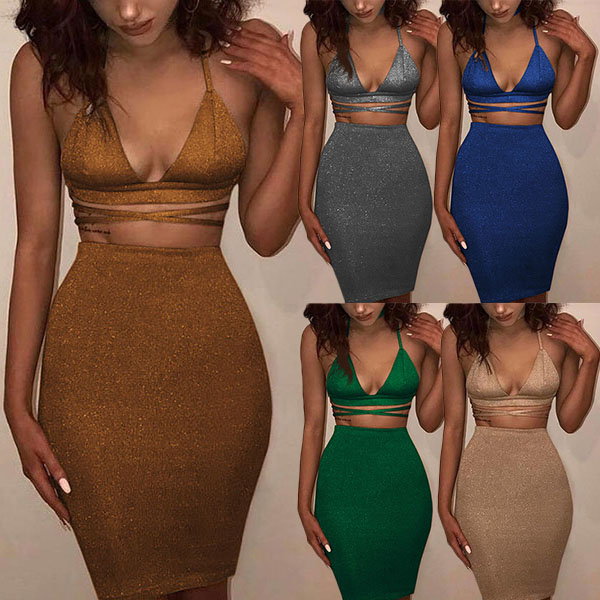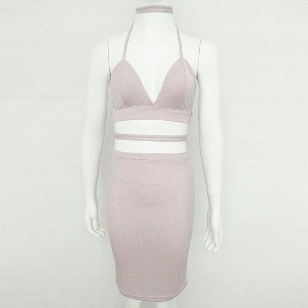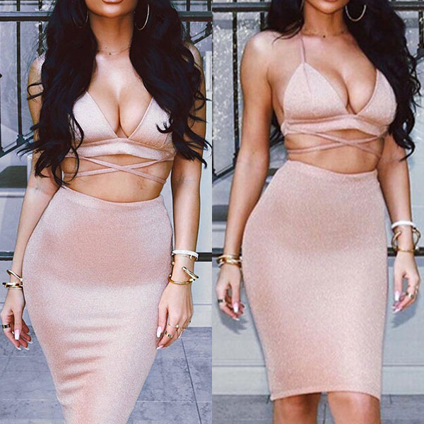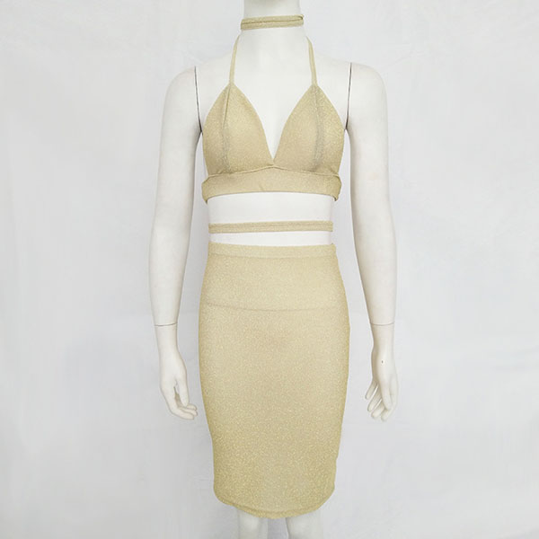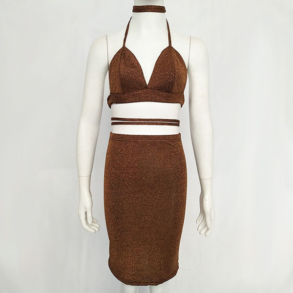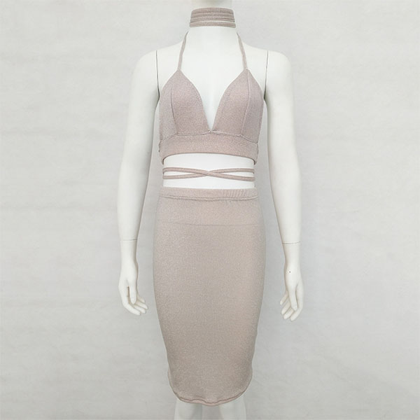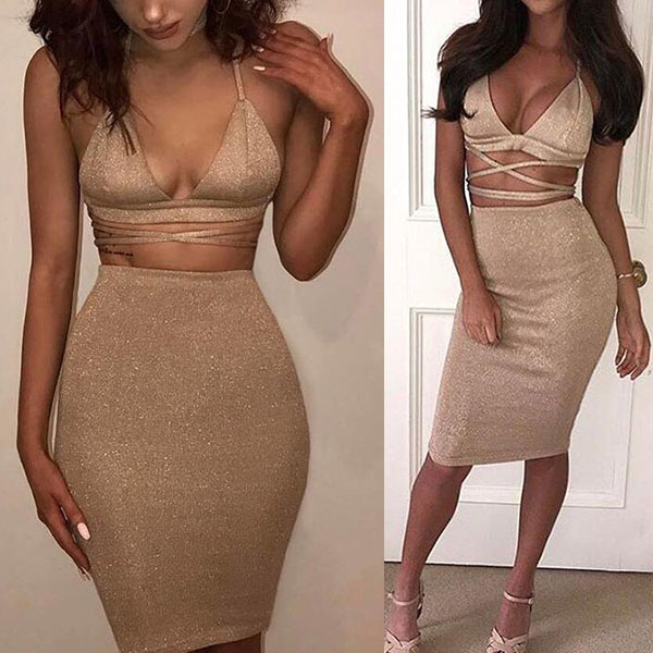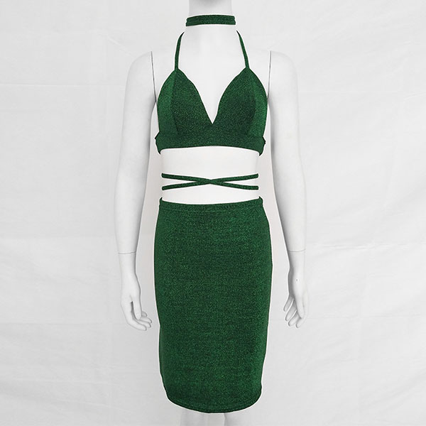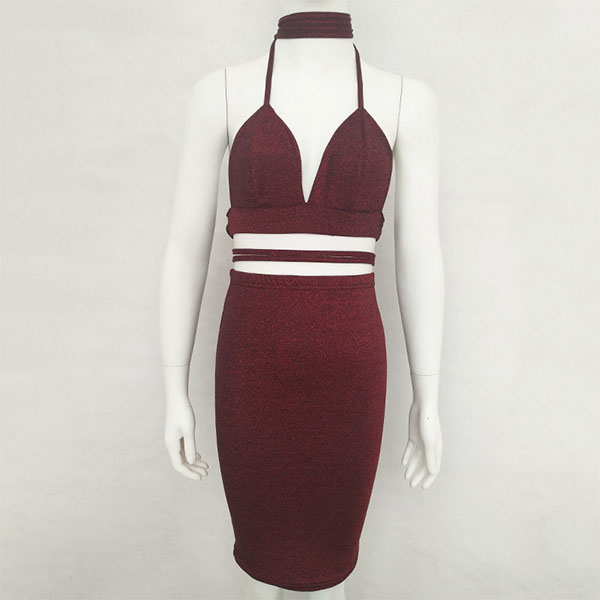halter crop top and a high waist skirt,this two-piece set is a good way to showcase your seductive curve