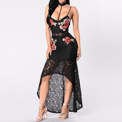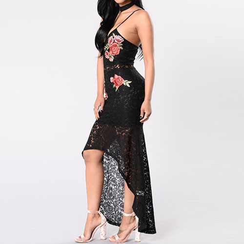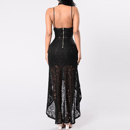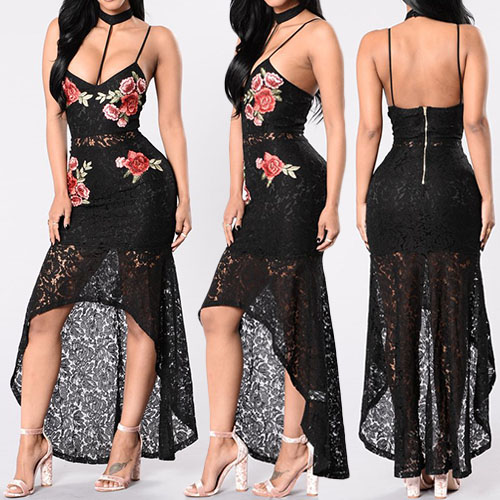 will do just that with zero effort needed on your part. Its sultry details like backless,v-neck,high-low hem and embroidery details