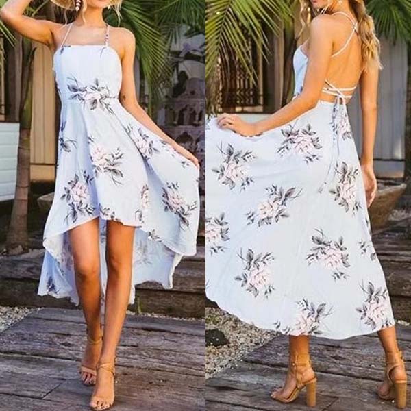 For a charming and beautiful holiday look,you can choose this printed dress. Sling style,the backless