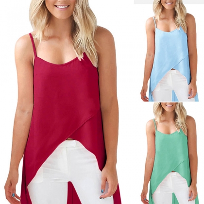 Sexy Backless High-low Hem Solid Color Sling Top