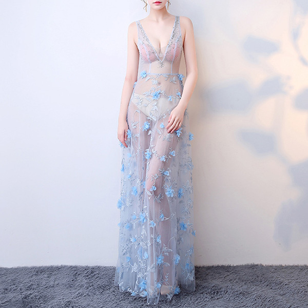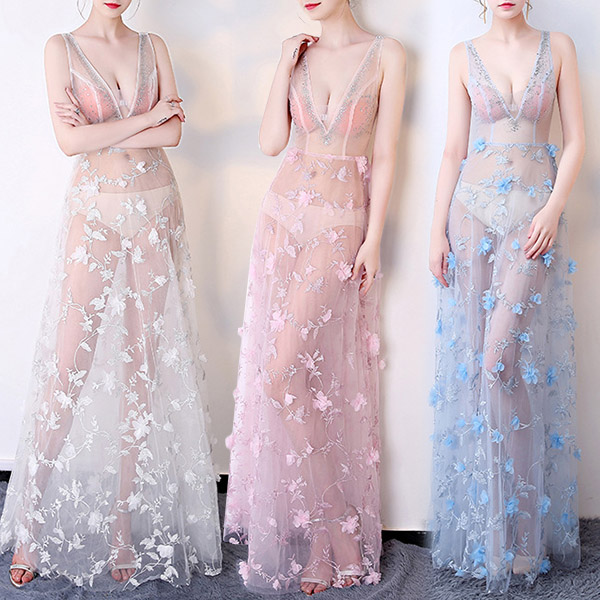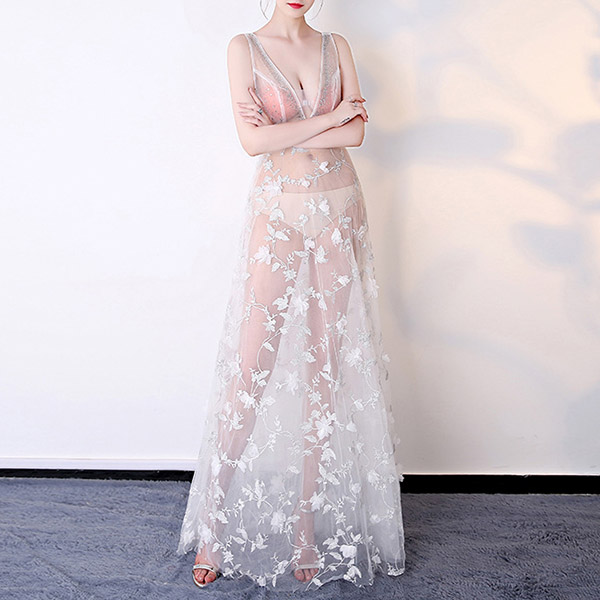 For an evening look that is full of sexy and alluring flavor,we suggest you choosing this dress! The see-through gauze and embroidered details make this piece look so sultry and fabulous. No matter when and where you are,you are bound to be the focus when you wear this dress.